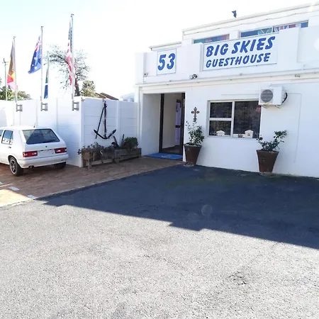 Das Big Skies Guesthouse bietet 7 Zimmer mit einem persönlichen Safe, einem Flachbildfernseher mit Satellitenkanälen und einer Klimaanlage für einen angenehmen Aufenthalt in Gordonʼs Bay. Die meisten Zimmer von dem 4-Sterne-Hotel verfügen über eine getrennte Toilette und eine Dusche. Zu den weiteren Annehmlichkeiten gehören auch ein Haartrockner und eine Duschhaube.
